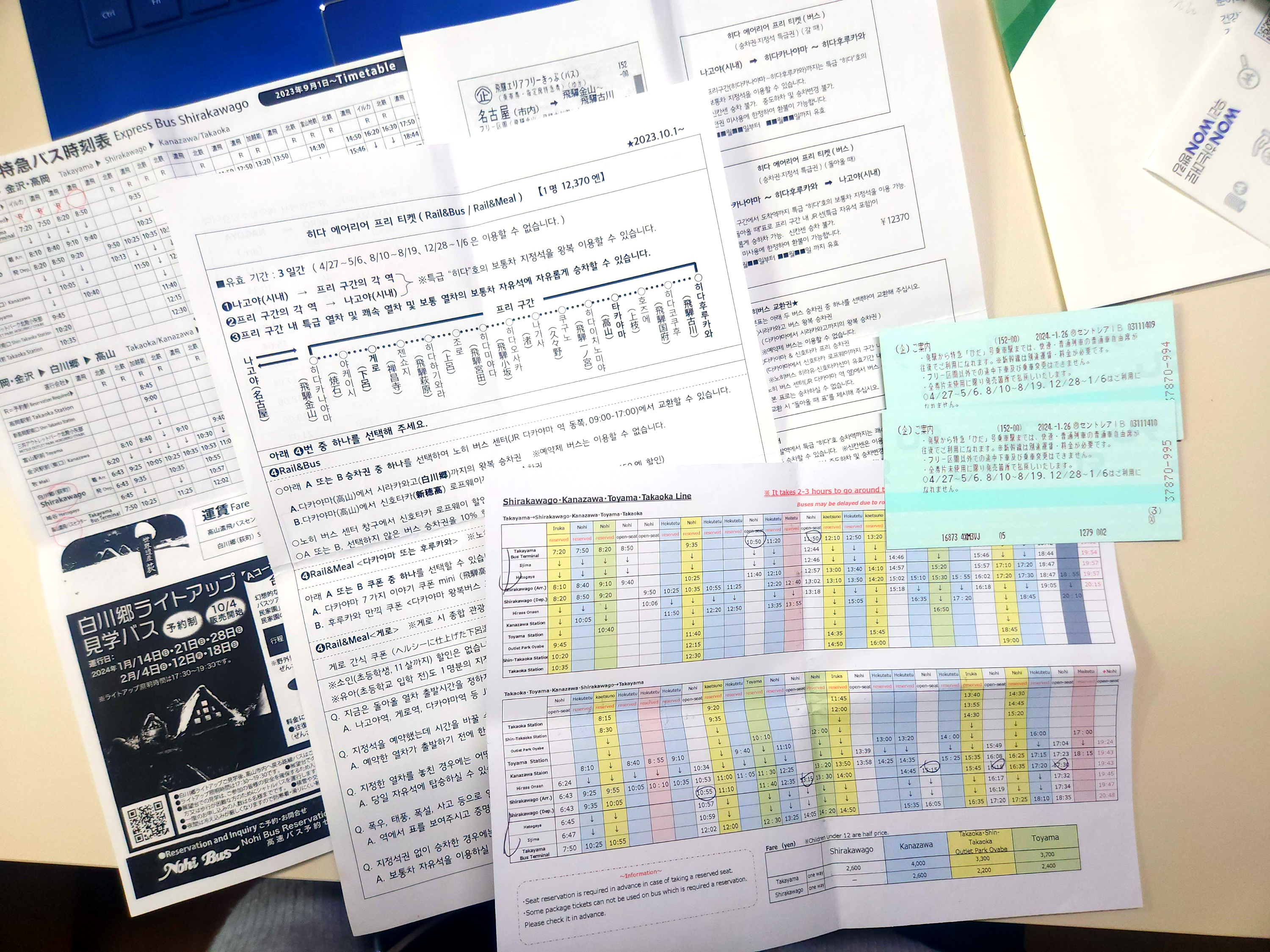 - 나고야 ↔ 다카야마 ↔ 시라카와고 왕복 교통비는 17,200엔 정도가 나와요